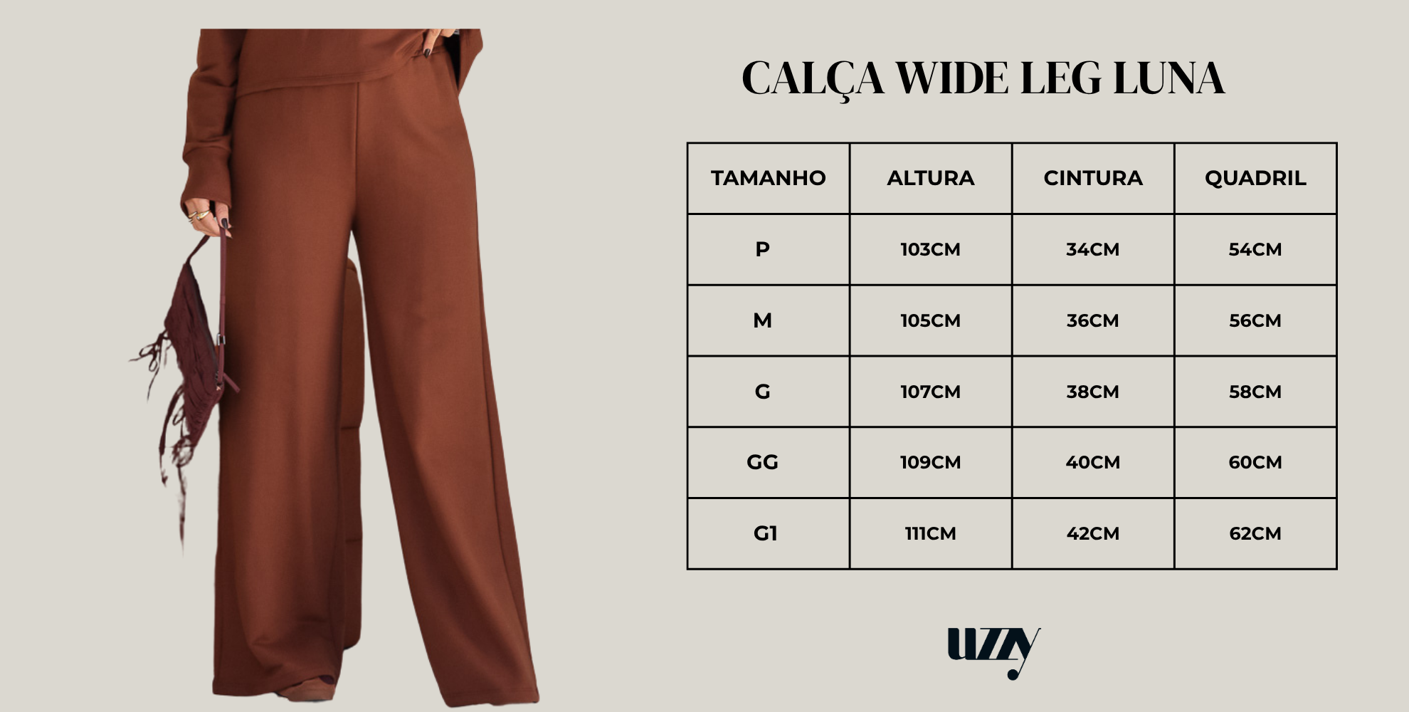 A Calça de Moletom Wide Leg Luna Uzzy é a escolha ideal para quem busca conforto, estilo e versatilidade. Com modelagem ampla e cós elástico, oferece liberdade de movimento e um ajuste perfeito. Os bolsos faca adicionam praticidade e um toque moderno à peça. Confeccionada com 75% algodão e 25% poliéster, proporciona um toque macio e agradável à pele.